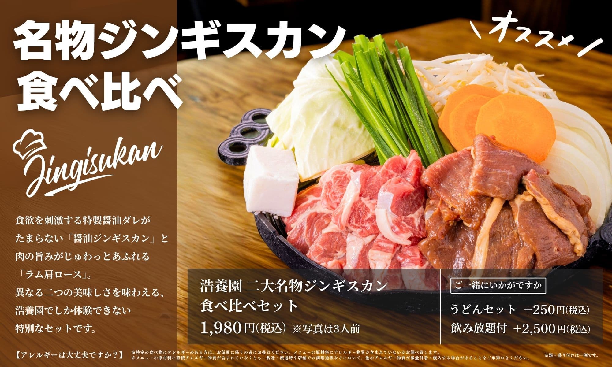 浩養園 二大名物ジンギスカン 食べ比べセット 1,980円(税込)